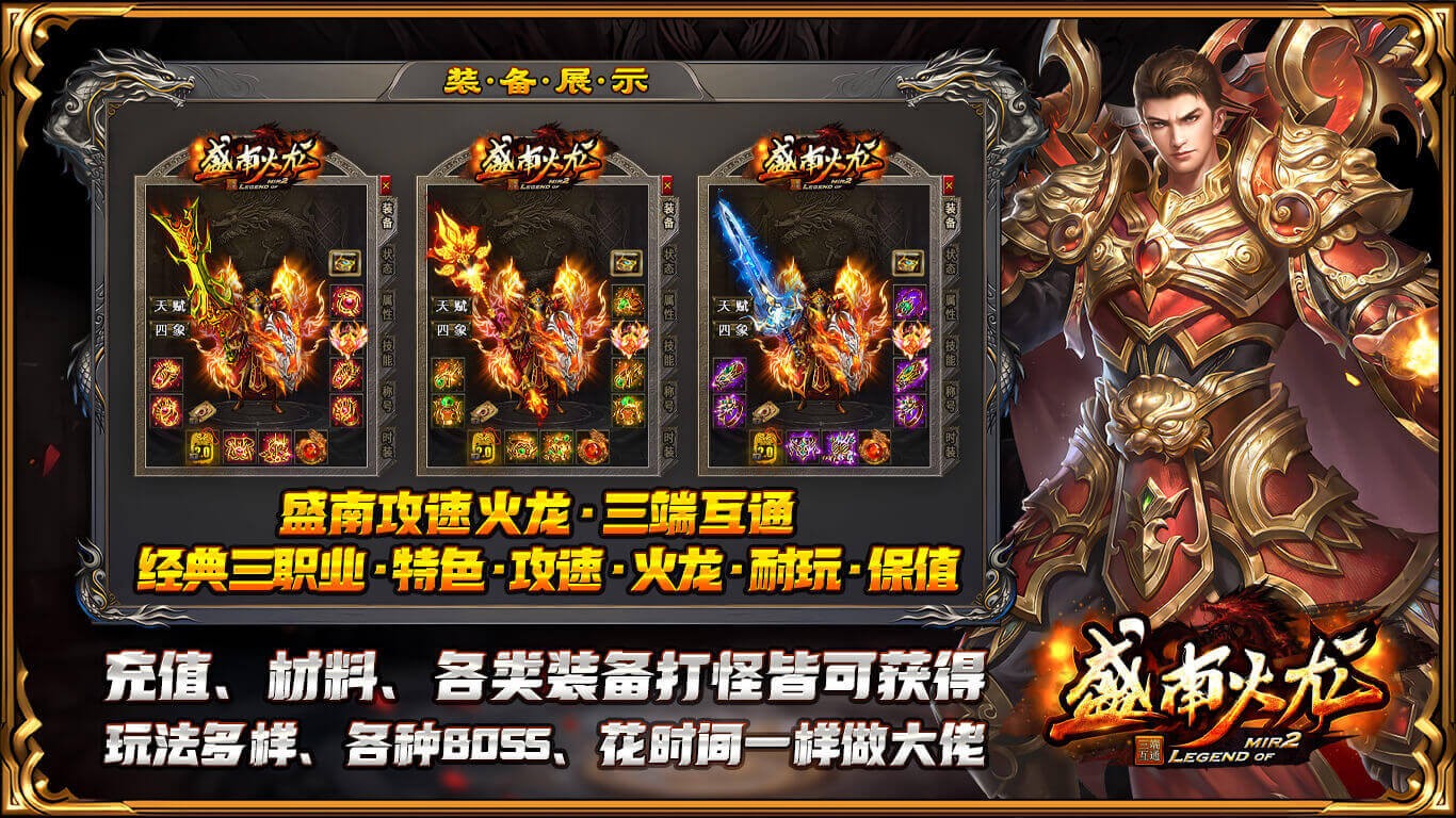 盛南火龙是一款以经典1.76版本为基础的复古火龙传奇手游,在盛南火龙中,完美复刻了三职业(战士、法师、道士)的热血玩法,结合了高爆率、自由交易、热血攻沙等经典元素,为玩家带来最纯粹的传奇体验。你可以重温经典,与兄弟们并肩作战,争夺沙巴克的荣耀!