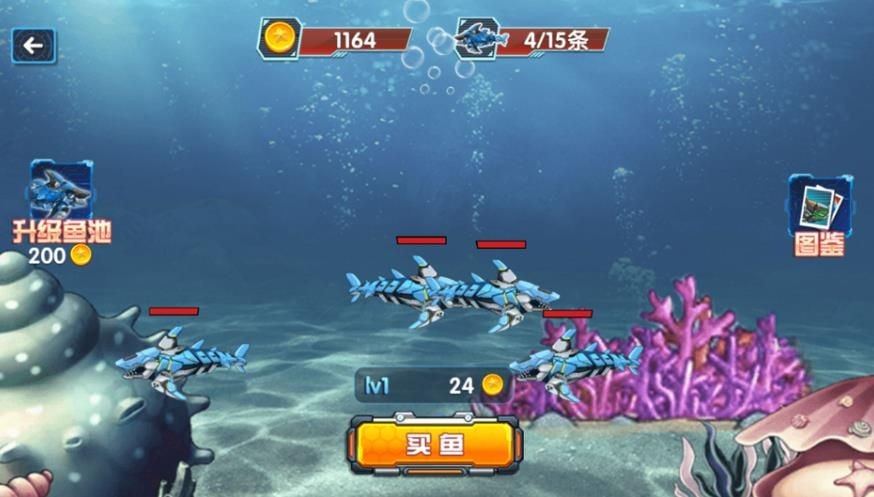 控制进化中的机甲杀手鲨鱼来统治海洋。自由发挥。你可以探索美丽的海洋世界,解锁像巨齿鲨和锤头鲨这样的稀有鲨鱼!探索危险的海洋世界,遇到章鱼、海马等其他海洋生物。克服你遇到大白鲨等怪物的恐惧。猎杀并攻击他们,成为幸存者,进化成更致命的海怪。别让任何鱼活下来!将饥饿的鲨鱼升级为史诗级的狩猎海怪