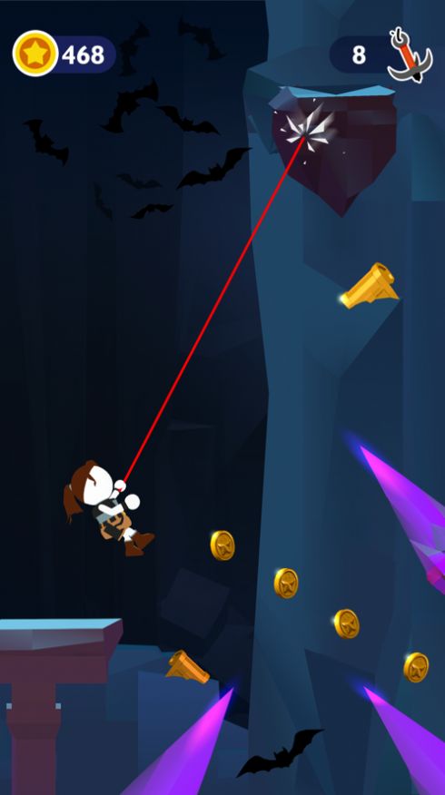 3、只需控制角色即可推进冒险,使用飞爪悬挂在墙壁上以避免危险,并调整钩的角度。