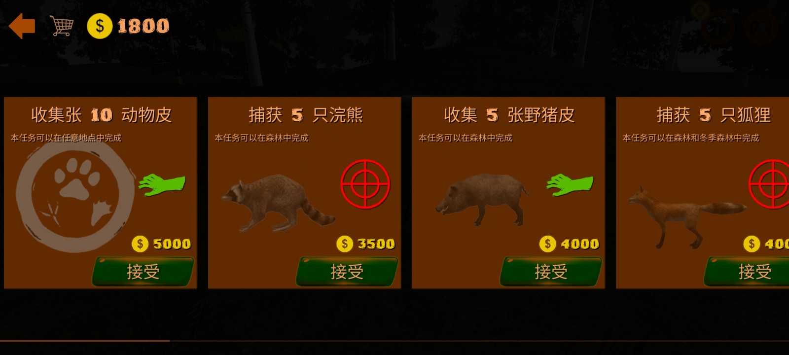 游戏中的动物种类丰富,每种动物都有自己的特点和行为习惯。玩家需要根据动物的行动模式,制定合适的狩猎策略。动物的反应和逃跑行为也非常真实,增加了狩猎的紧张感和成就感。