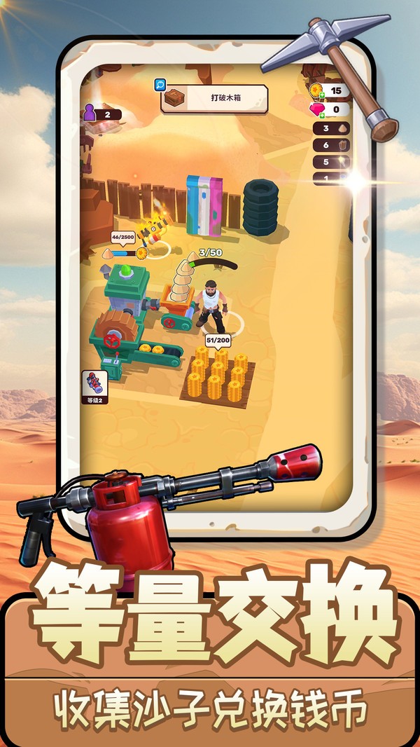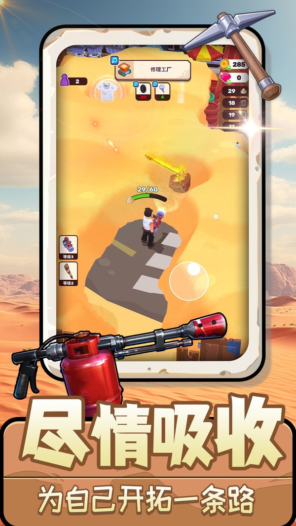 3.你可以使用简单的工具,如斧头、镰刀等,采集沙土、石头等基础资源,合理运用。