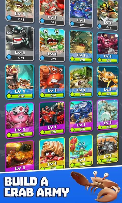3、游戏的螃蟹类型很多,每个实力都不差,还能搭配合适的装备。