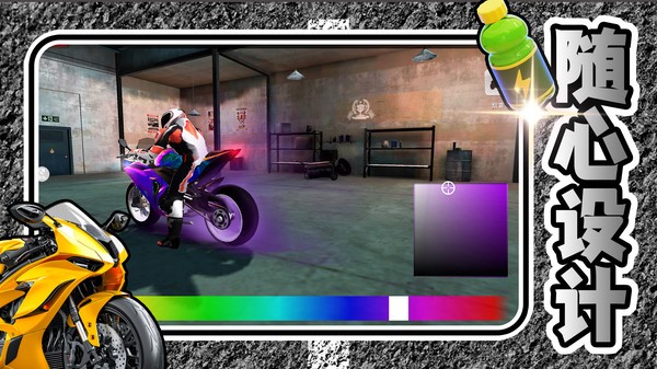 2.玩家可以自由定制摩托车的外观和性能,包括车漆颜色、贴纸、轮毂、发动机等。