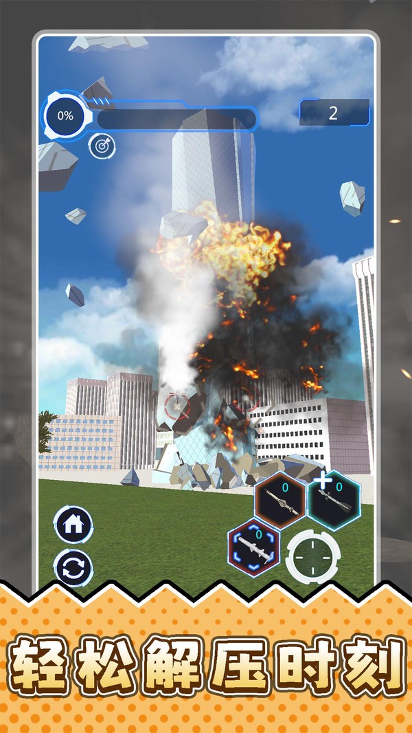 1.你可以随意探索城市,寻找感兴趣的目标进行破坏;也可以根据自己的想法,创造出独特的毁灭场景。