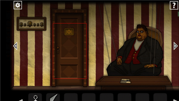 来到外面点击后面的墙上,在上面可以调节机关(这上面的提示就是前面木偶戏下面的桌椅上的印记),进行调整之后开启。