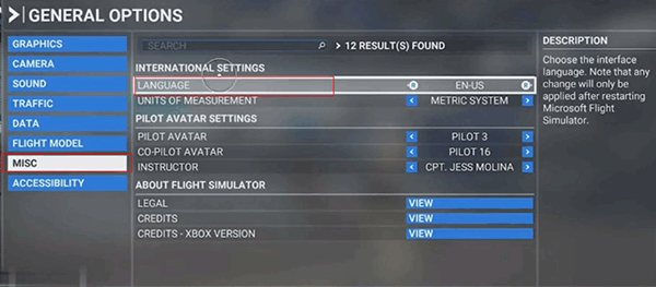 进入设置页面后点击【MISC】,进入杂项设置、在这里面找到【language】,现在我们看他是EN-US,我们只需要调整成CN就可以了,重新进游戏的时候就是全中文页面了。