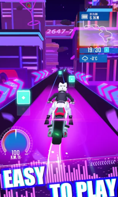 节奏音乐摩托车是一款3D摩托车音乐节奏游戏,在节奏音乐摩托车中,突破传统竞速框架,将摩托车驾驶与音乐节拍深度融合,玩家需在霓虹绚丽的赛博都市、未来感十足的电子赛道中,跟随摇滚、电子、流行等多元曲风完成加速、漂移、跳跃等操作,感受“速度与旋律共舞”的沉浸式体验。