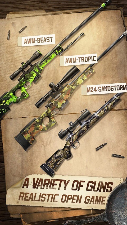 《狩猎狙击手》是超真实的打猎竞技游戏!你能与全球真人玩家同台,三局两胜赛制,按狩猎伤害计分,赢丰厚奖金。游戏环境逼真,多地狩猎赏自然风光。操作简单,竖屏单指操控。武器多样可升级,快来PvP模式证明你是狩猎之王!