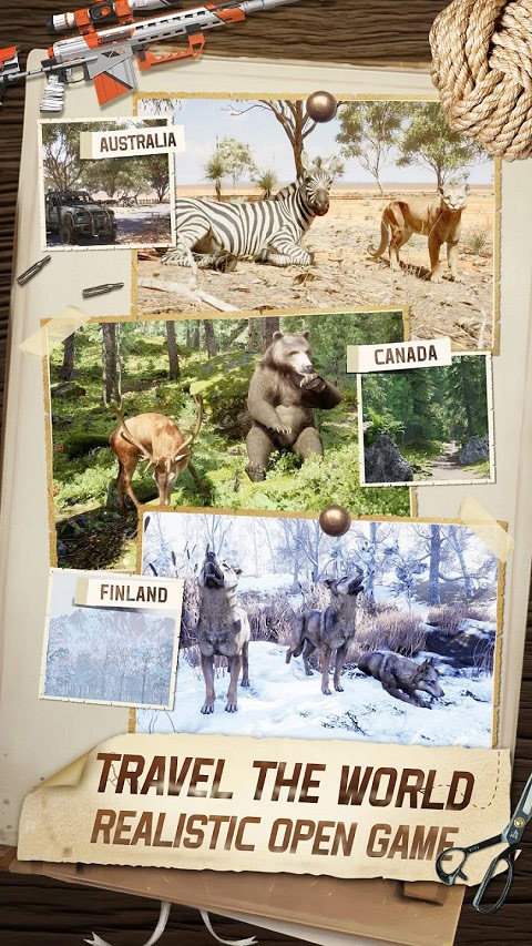 1、真实狩猎场景:能前往各大洲逼真狩猎地点,猎杀鹿、狐狸、熊等自然栖息的真实动物,体验各地奇特打猎风情。