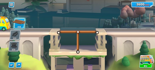 2、进入游戏如图,玩家需使用木材来建造桥梁;