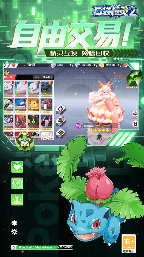 3、角色塑造个性化:玩家能自由选择角色扮演方式,塑造独一无二的口袋训练师形象。