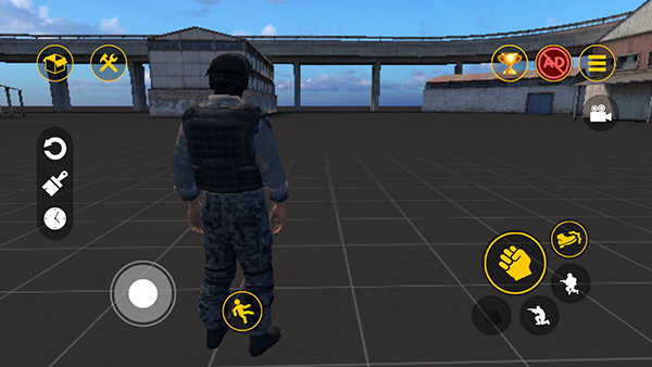 2、来到场景之后可以使用屏幕的按钮来进行人物操作。