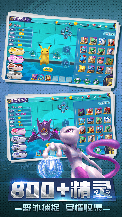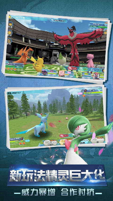 3、融合经典掌机1v1对战,创新推出精灵巨大化、神兽融合等玩法,开启口袋新篇章。