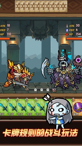<卡牌勇士>是卡通风RPG闯关游戏。它以创新卡牌规则打造独特战斗,玩家用选定三张卡牌与怪物拼点定攻击方,技能卡牌可无视拼点直接攻击,还能选择防御。游戏有三款个性英雄可解锁,搭配独特符文体系,还有丰富关卡,快来收集卡牌培养强力英雄!