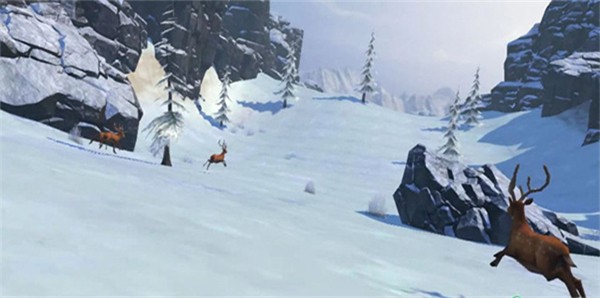 第一次经典模式的尝试,在2分钟之内就结束了。这一方面是因为自己对于操作和地图还不太熟悉,另一方面则是因为游戏确实有一定难度。除了在不同的地形中滑行,玩家还需要躲避随时倒塌的树木、山间跌落的落石和偶尔出现的小鹿,说到这里颇有一种灾难片的感觉呢!个人认为,虽然这些障碍并不会出现在真实的滑雪场(真要出现就会要人命了),但却给玩家提供了一些意外的乐趣,尤其是在玩家熟练操作之后,躲过场景中不断出现的各种障碍,想必也是一种成就满满的感觉。