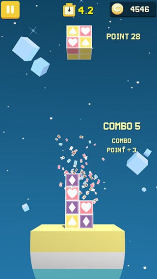《口袋方块》是在俄罗斯方块玩法基础上的消除类游戏,游戏中玩家要在限定的时间内,通过旋转方块,让具备相同颜色的在一条线上,期间无断连过程,便可轻松完成消除,其中方块是采用3D画面效果设置的,玩家要快速浏览3D方块的颜色分布,但速度要快,否则在限定的时间内方块会自动下落,待方块叠加至最上层,即为游戏结束。