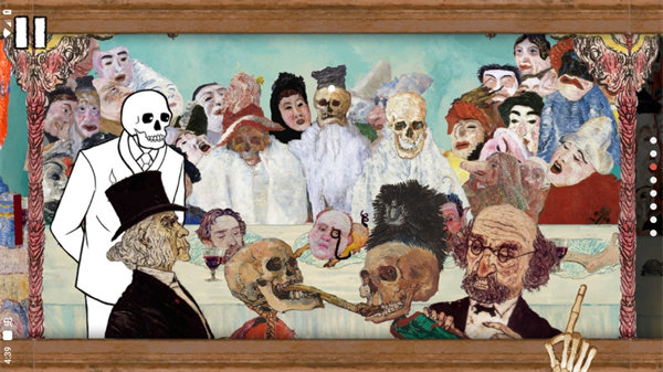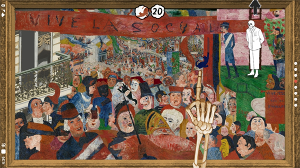 1、艺术灵感独具:以比利时现代艺术先驱詹姆斯·恩索尔作品为蓝本,采用超现实主义画风,打造诡异怪诞的油画世界。