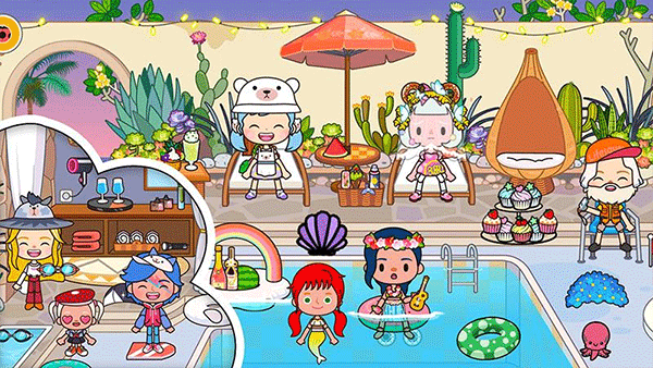 1、角色场景丰富:拥有21个卡通人物角色,还有公园、餐厅等7个可探索地点,构建多彩度假世界。
