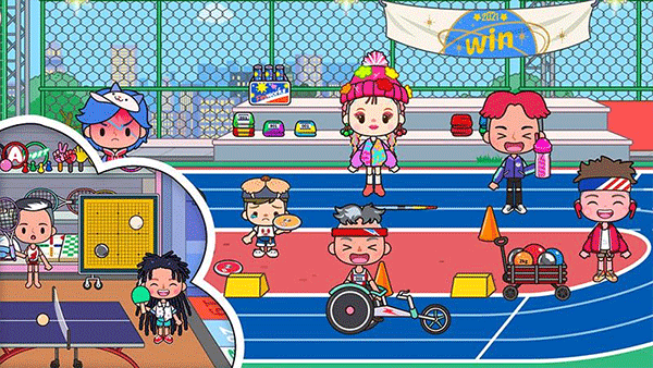 1、进入游戏就是一个城市,里面有各种各样的建筑物,小朋友们点击哪个建筑物,就会进入这个建筑物里,然后在这个建筑物里自由活动
