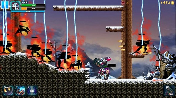 3、游戏模式主要以闯关为主,通过关卡,可以在主界面升级机甲能力。