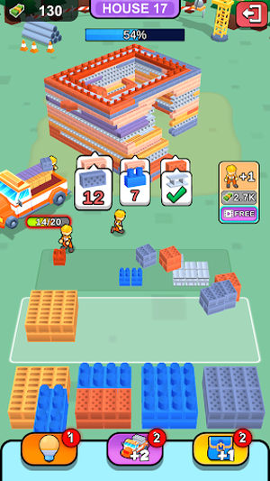 游戏提供了多种形状和颜色的积木,包括方形、长方形、三角形等,让玩家可以根据需要自由选择。