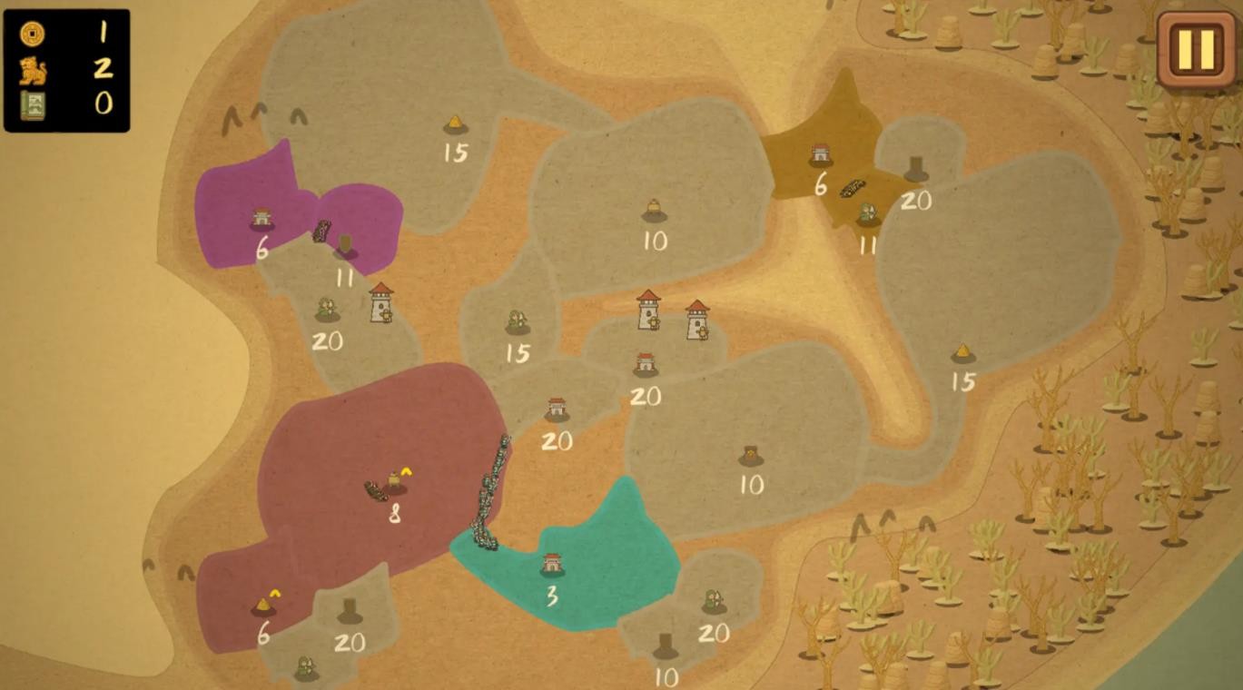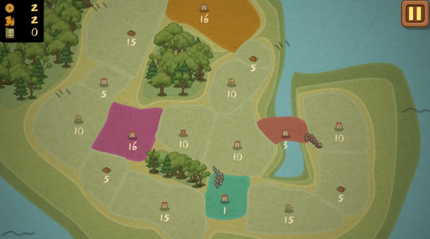 3、正式开始后点击你的地盘可以派遣小兵占领不同的区域,占领后的地盘会自动生产小兵。