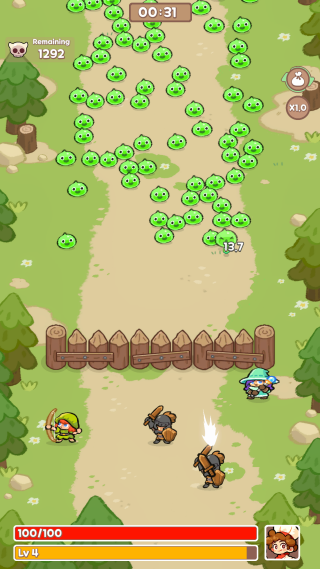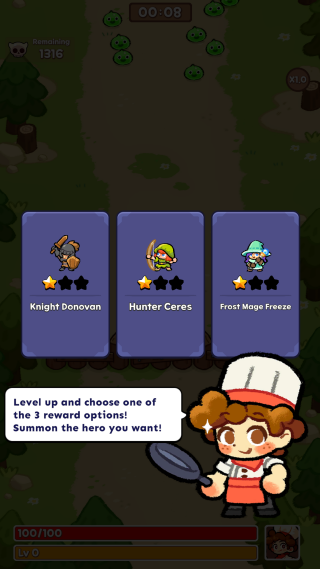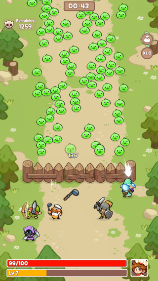 4、选好英雄后就会开始,角色会自动攻击出现的怪物,击败怪物后会获得经验用来提升等级。