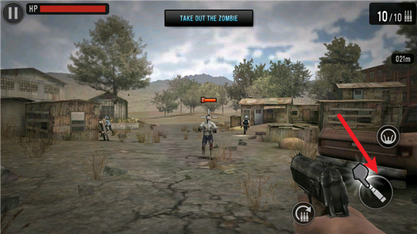 3、战斗中可以切换不同的武器战斗,拖动右侧的按钮即可打开瞄准镜。