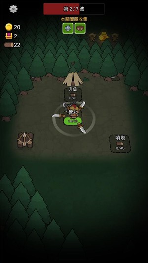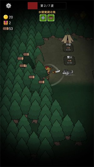 2、进入关卡后移动角色来砍伐树木获得木材,获得木材后可以建造不同的建筑。