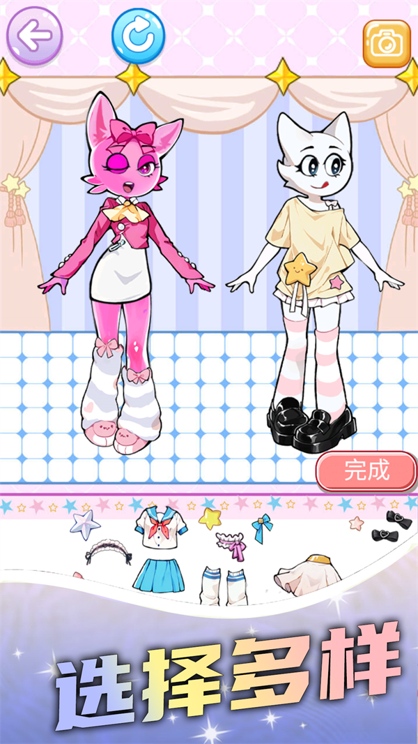 游戏提供了海量的服装和配饰,包括各种风格的服饰、发型、鞋子、饰品等。玩家可以根据自己的喜好,自由搭配出独一无二的造型。