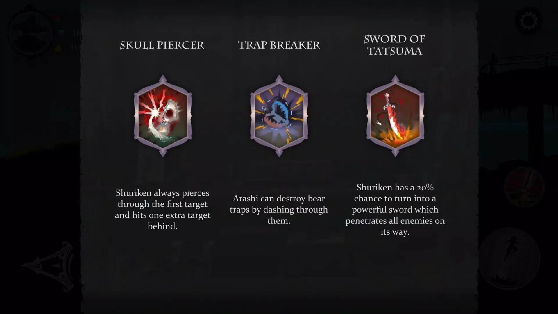 1、游戏内设两类商店:其一用于强化技能,其二出售伪装外观皮肤(建议优先升级技能,后期再考虑购买)。【技能升级推荐】优先将拔刀术升至满级,满级拔刀术可破坏地面夹子,有效避免冲刺过程中被夹击致死的窘境。其次提升生命值上限,增强生存能力。接着升级飞镖威力,最后再考虑伪装术。