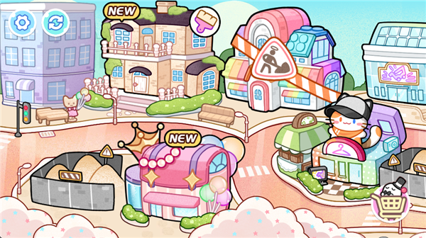 2、柔和的粉色、浅蓝色调营造温馨氛围,结合轻快BGM和细节动画,打造身临其境的奇幻世界。