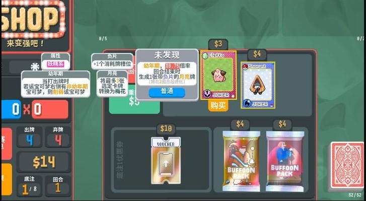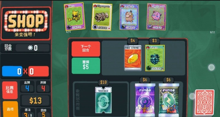 1、宝可梦元素全面融入,原作中的“小丑牌”被替换为皮卡丘、杰尼龟、小火龙等经典宝可梦形象,每张卡牌保留宝可梦的属性。