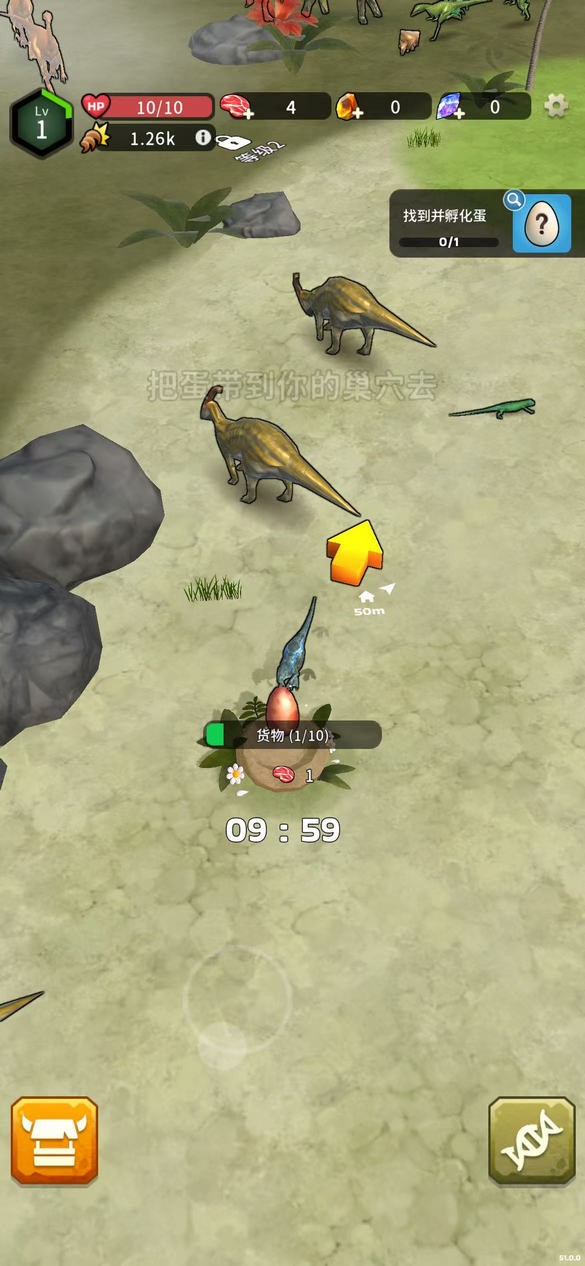 1.进入游戏之后移动操作摇杆,控制你的恐龙寻找巢穴。