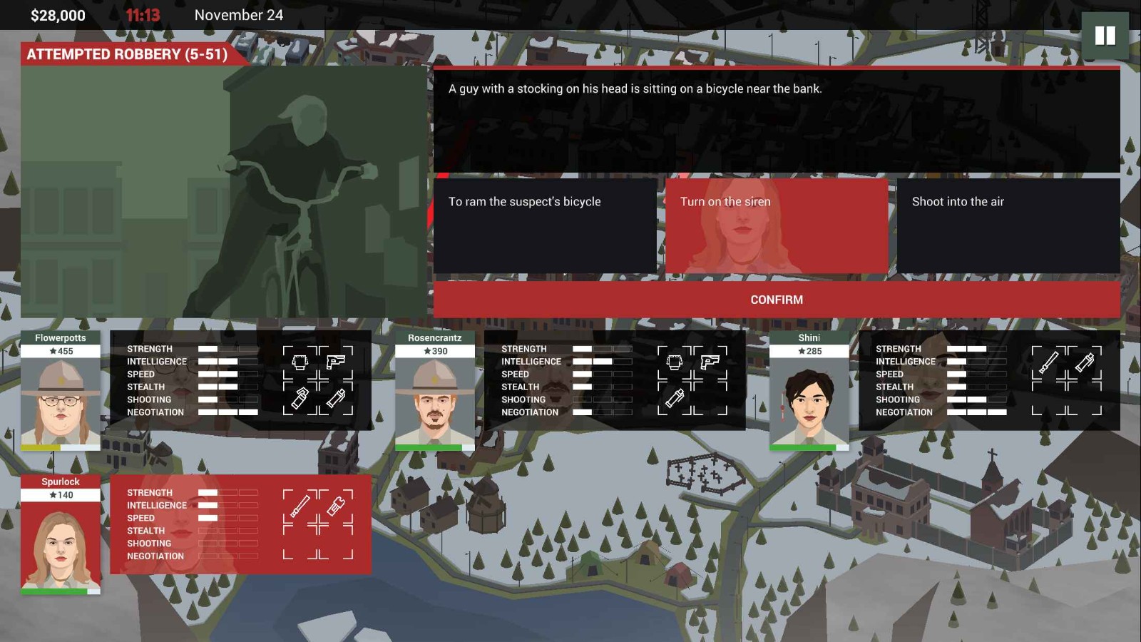 首先是警员属性点数,还有出警尽量不要一个人去,就算是战神警员也不行。每个出警都会让你做出判断,即使是战神警员也会有薄弱的属性,很容易翻车(除了那个满属性的那个人,我不知道是初始的还是后面才来的,太厉害了,就是每次都喝酒,被我拉去戒酒了哈哈哈哈)