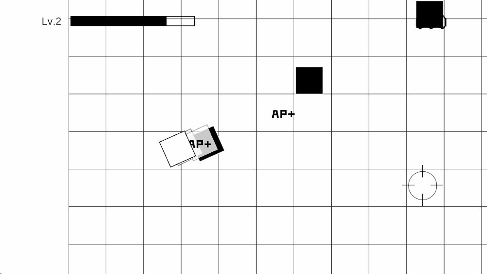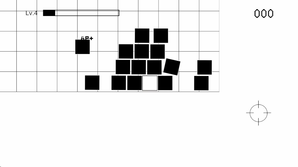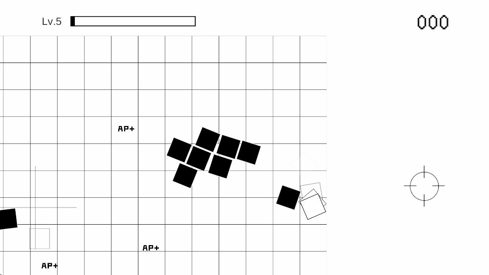 纯白方块与纯黑敌人形成强烈反差,背景采用灰度渐变,避免视觉疲劳的同时突出核心元素。