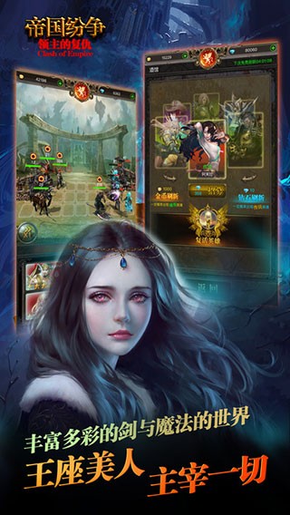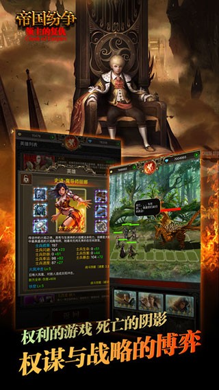 帝国纷争手游是一款以中世纪为背景的策略类手游,融合了战斗、建造、收集、冒险等经典策略元素,采用2D写实风格回合制战棋或3D画面骨骼动画技术,包含伤害、防御、暴击等属性体系,背景设定于人类与兽人交战的中世纪奇幻世界,包含多个文明种族(如罗马、中国、日本)和特色英雄系统,每个文明都有独特的文化特色和特殊兵种。