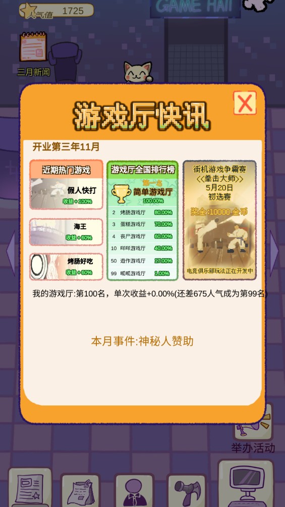 7.现在就可以经营你的游戏厅了。