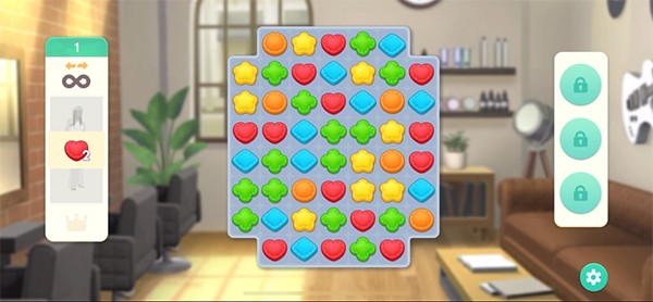 1、三消玩法与角色改造深度融合,以经典三消为核心,通过消除相同图块完成关卡目标,解锁服装、化妆品、家具等道具。