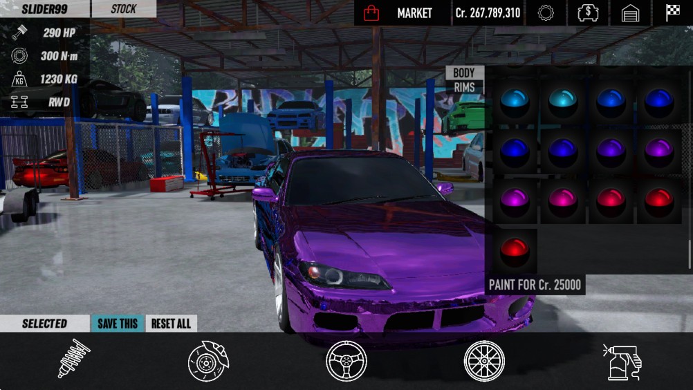 游戏提供了多种不同类型的赛车,每一款都有其独特的性能和外观。玩家可以根据自己的喜好选择赛车,并通过比赛获得奖励,解锁更多高级车型。