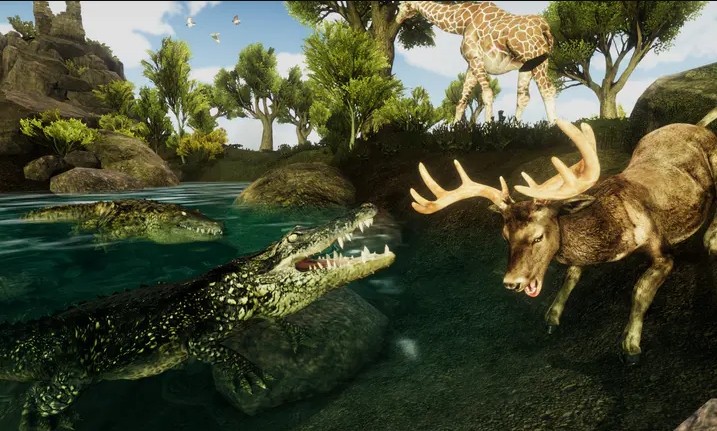 终极鳄鱼模拟器手游是一款独特的3D冒险生存游戏,采用无限大地图设计,可以自由探索广阔的热带雨林,捕食猎物以维持生命,甚至与天敌展开激烈的搏斗,带入一个充满挑战与乐趣的热带雨林世界,在这里,玩家需要扮演一只鳄鱼,努力生存下去,可以自由地在热带雨林中探索,发现隐藏的宝藏和秘密。需要捕食猎物以维持生命,同时还需要哺育家庭,与鬣狗、狼群和猎豹等凶猛的猎食者展开激烈的对战,体验到更加逼真的生存挑战。