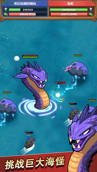 3、策略性海战与随机事件,战斗采用阵型搭配,需根据敌人类型调整战术,船长技能(如“天神与奇迹”)可逆转战局。