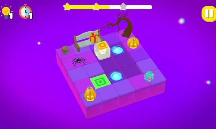 1、空间推理与精准操控,以极简主义设计为核心,控制被困在狭小空间的“魔方灯”,通过滑动翻转和旋转将其移动至指定发光点。