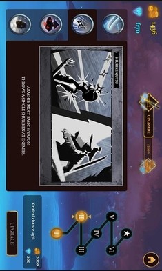1、技能树与装备系统,可通过商店升级技能(优先推荐拔刀术、生命值、飞镖),装备系统支持解锁新武器和神器。