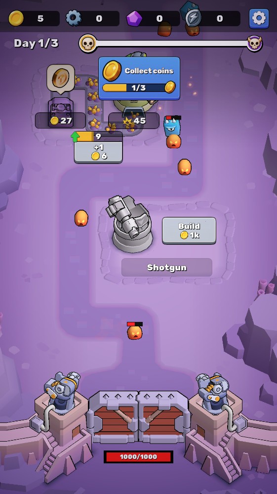 2.随着游戏推进,需要强化防御设施,升级诸如 “Shot-gun” 之类的防御建筑,提升防御能力,应对敌人进攻,遵循 “Fortify your defenses!” 的提示。