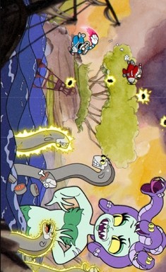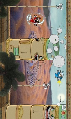 2、高难度横版射击玩法,需操控茶杯头或马克杯人,敌人攻击模式复杂,需要通过跳跃、射击、闪避等操作闯关。