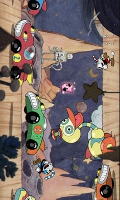 经典横版卷轴类射击茶杯头。