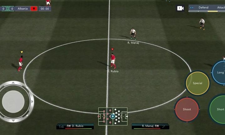5、全部选好后就会正式开始,正式开始后左边控制球员的移动,右边分别是射门、短传、长传、特殊动作。