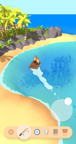 2.仔细观察操作界面的下方,你可以操控着木筏去抓鱼,利用工具抓鱼更快。