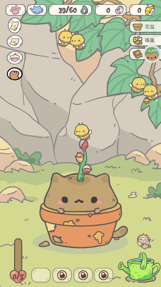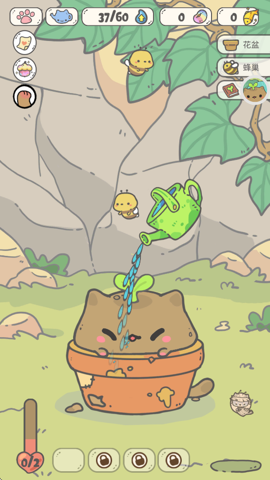玩家需定期为猫咪盆栽浇水、施肥、修剪枝叶,清理落叶与驱赶害虫,模拟真实植物生长周期。每只猫咪植物拥有独立成长轨迹,从幼苗到成熟期会解锁不同形态。